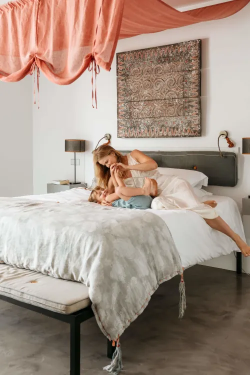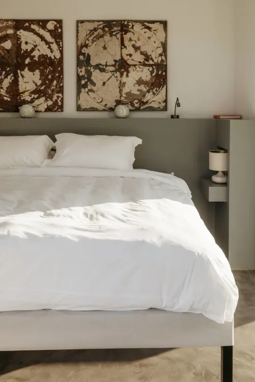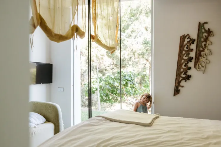 Inside, each bedroom has been individually styled by designer Rosarinho Gabriel, blending Scandinavian minimalism with Balearic warmth. All suites open to private terraces and include ensuite bathrooms stocked with eco-friendly La Compagnie de Provence products, plus high-end amenities such as B&W sound docks, smart TVs, and L’Occitane bath luxuries.