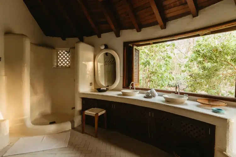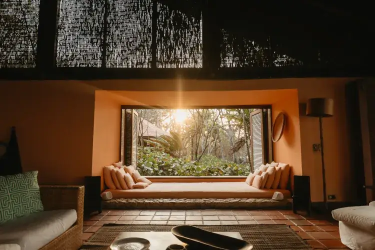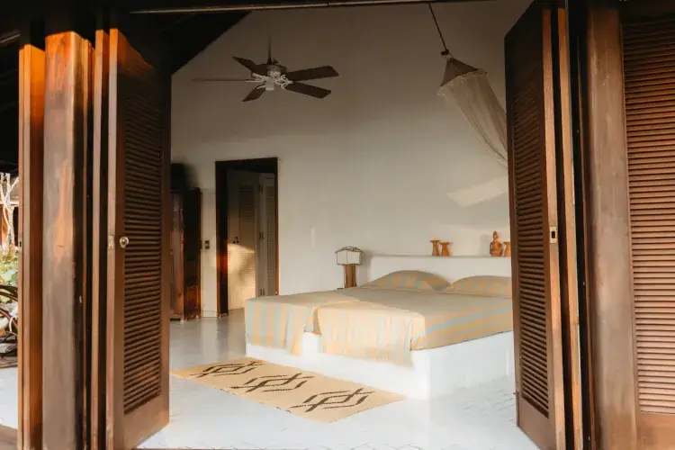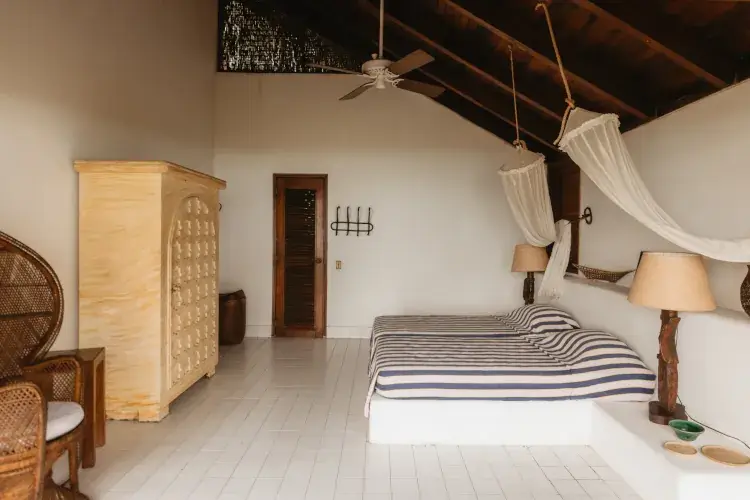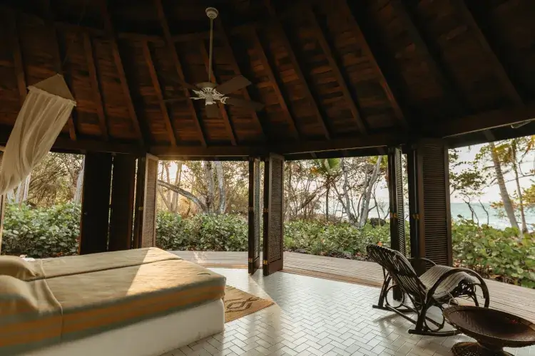 Everything about Casa Ceiba exudes a blissful sense of off-the-grid seclusion. Jungle-hut chic extends throughout, with darkwood furnishings, bamboo detailing and other handcrafted natural materials connecting the villa with its lush natural surroundings. A mix of terracotta and glazed pattern tiling add to the earthy and homely vibe of the place, while an abundance of low-profile seating and comfy hammocks means there’s always somewhere to flop at hand.