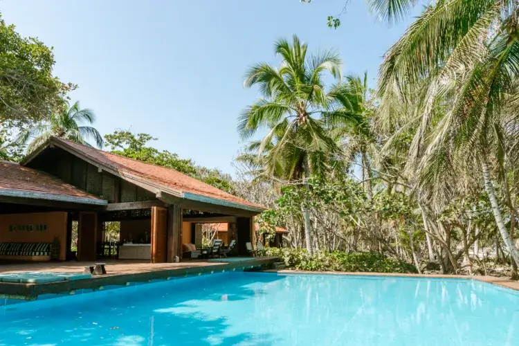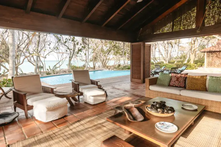 The centrepiece of this wonderfully rustic holiday home is its huge palm-lined swimming pool. Filled with filtered sea water, it forms the central focus of the property and is a fabulous spot to cool off while gazing over the beach just steps away. The six bedrooms are accessed from the main house in cabaña style and sleep up to 12 guests. All have beautifully tiled ensuite bathrooms with walk-in showers, while the master adds a lovely soaking tub too. Five of the suites also open to their own terrace boasting superb views over the Caribbean Sea.