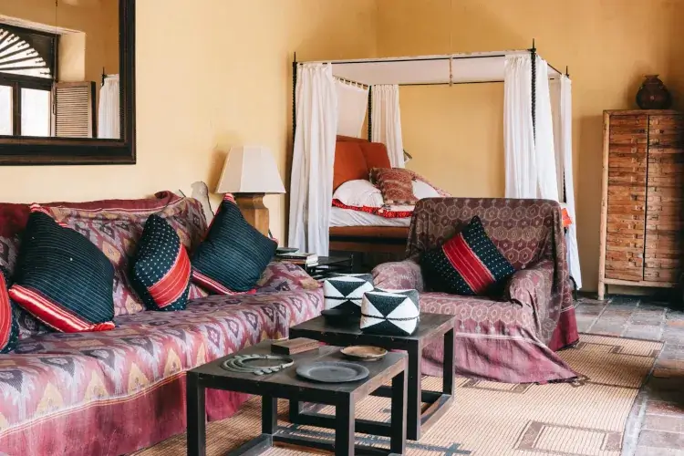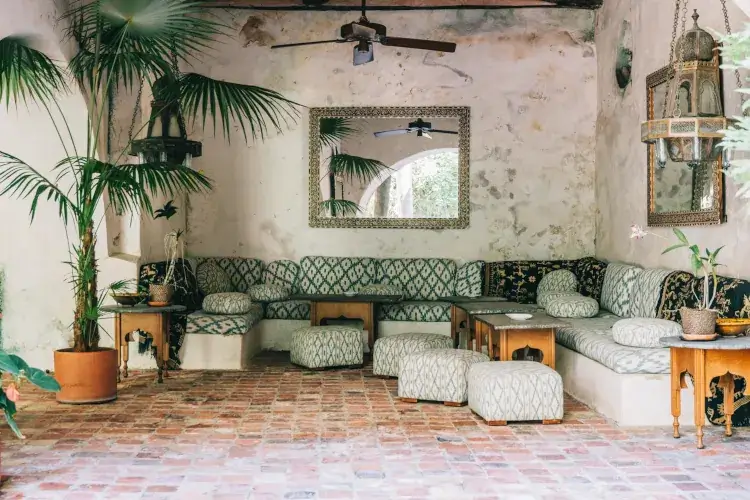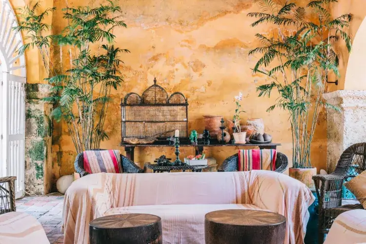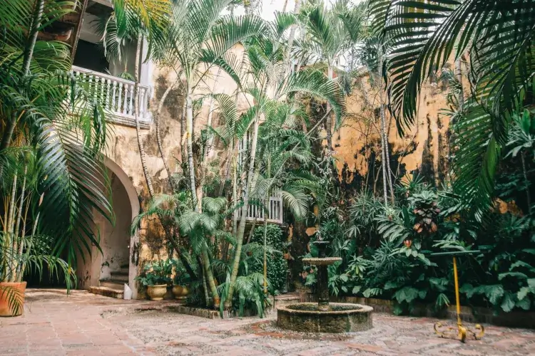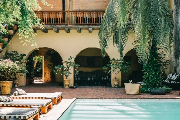 Antique studded wooden doors mark the entrance to this grand residence, and very much set the tone of old-world Cartagena that pervades this rather special property throughout. You’ll likely spend much of your stay just exploring all the wonderfully airy rooms and secluded patios of this enchanting colonial mansion. Pass under tall stone arches into light-filled terraces, flop on plump velvet sofas under chunky wood-beamed ceilings, lose yourself among the profusion of soaring palms and fragrant flora, you’ll find charm and character in every corner.