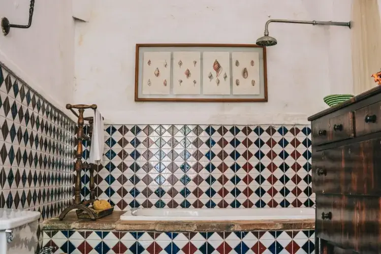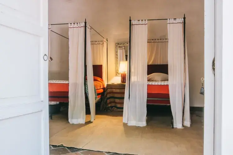 This seven-bedroom property is made up of two twin rooms on the ground floor, four on the first floor and a studio suite accessible from the pool terrace. The master bedroom features a particularly beautiful and spacious bathroom, including a tile-clad soaking tub and separate shower. All upper-floor rooms also have ensuite bathrooms, while one opens on both sides to afford views over two patios. The studio suite also has lovely floor-to-ceiling windows that lead onto the veranda overlooking the pool.