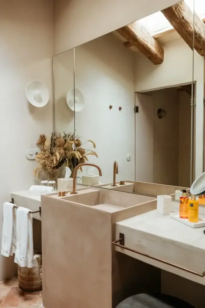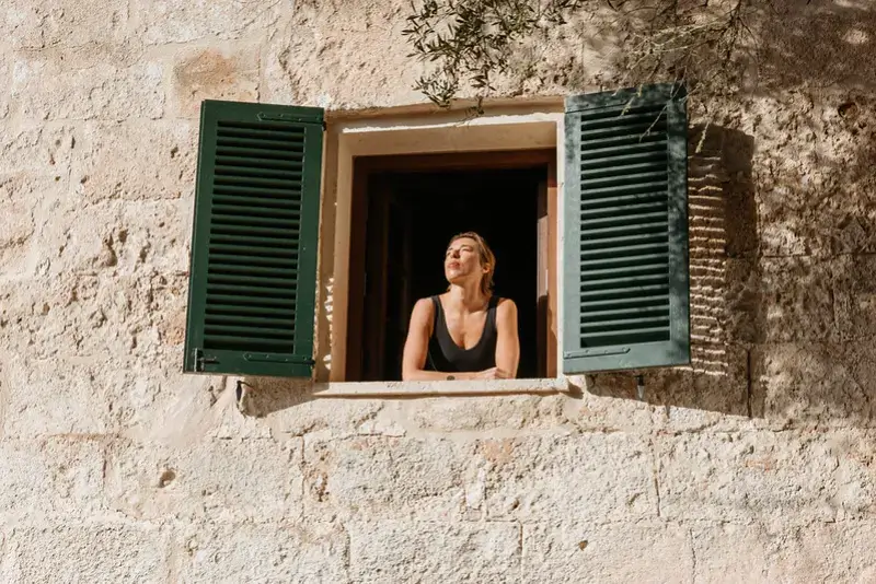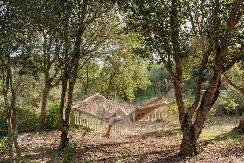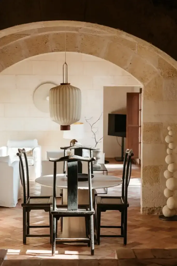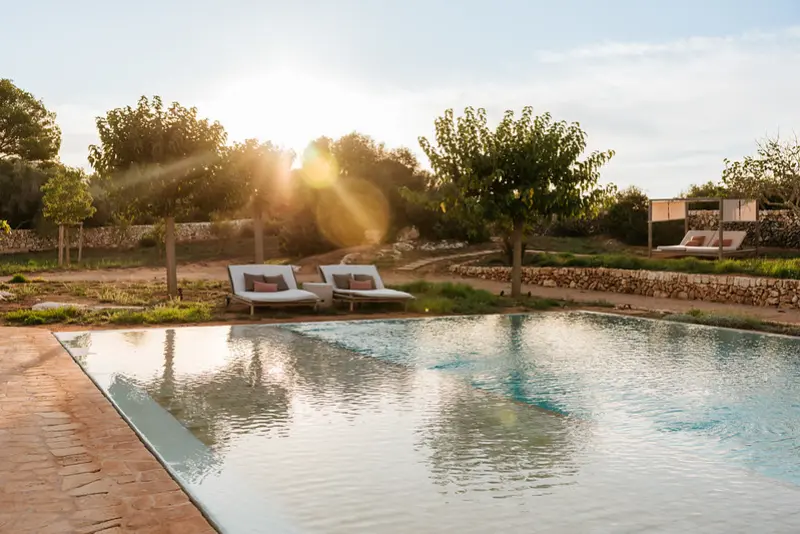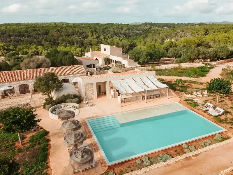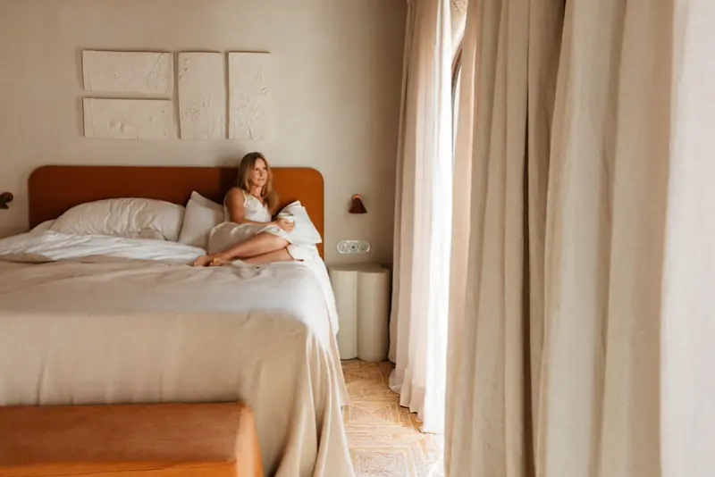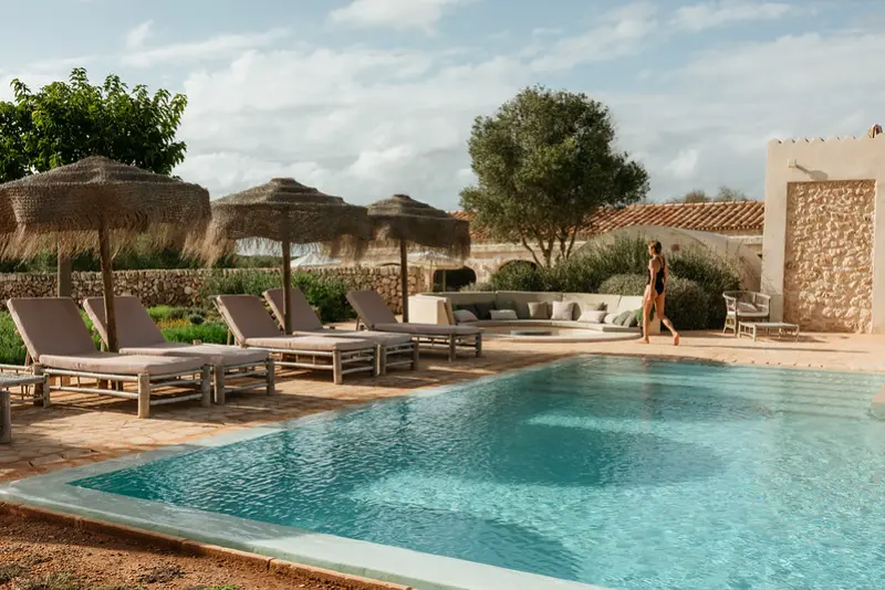 The estate features six generously proportioned bedroom suites, each offering guests a private terrace, thoughtful design, and high-end details. Five of these suites are situated in the old granary and barn buildings outside the main house, while a double bedroom suite under a wooden beamed ceiling is located on the first floor of the main house. Each room in the grounds includes a furnished sun terrace, integrated bathroom, and provides yoga mats.