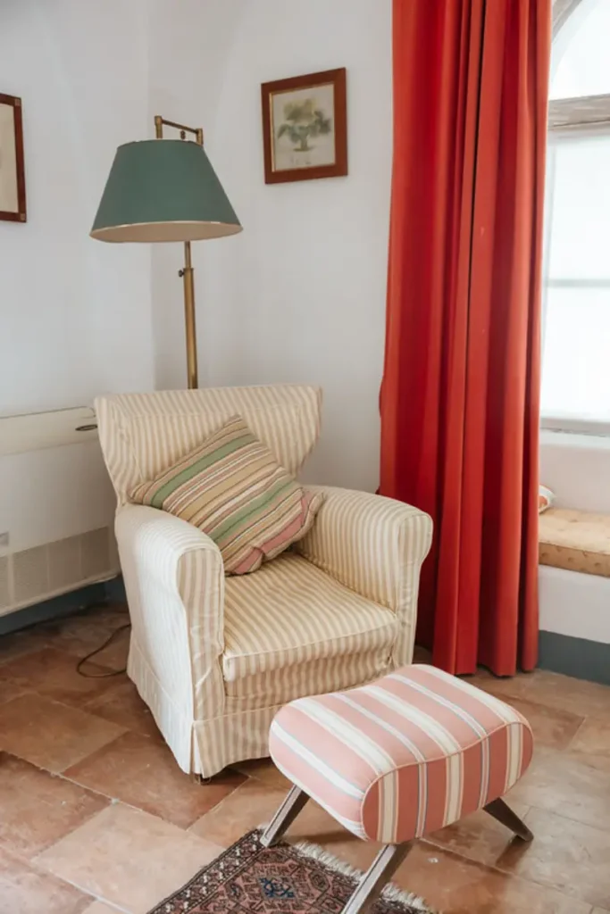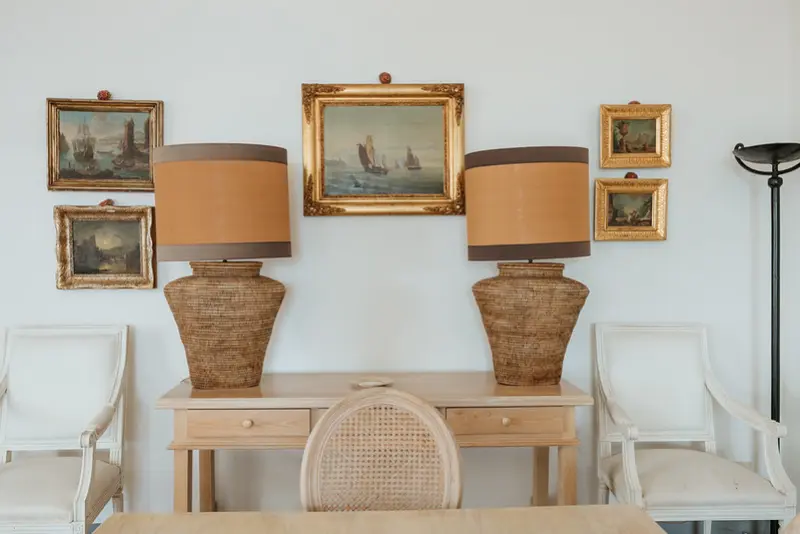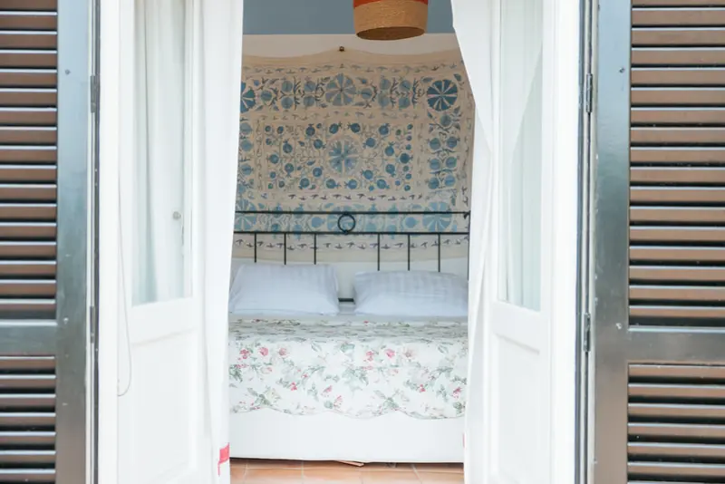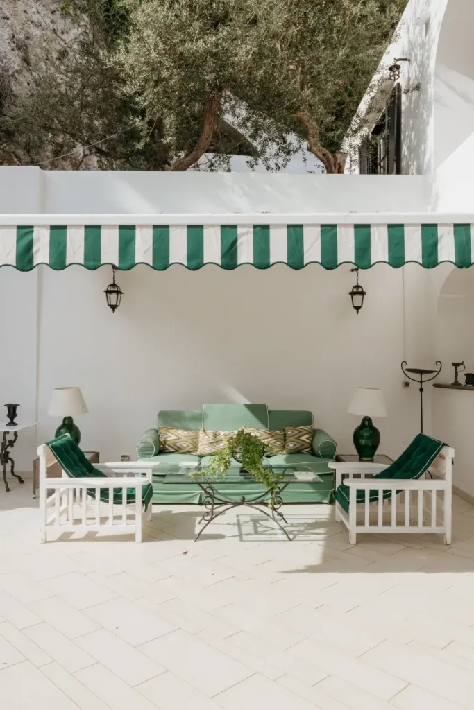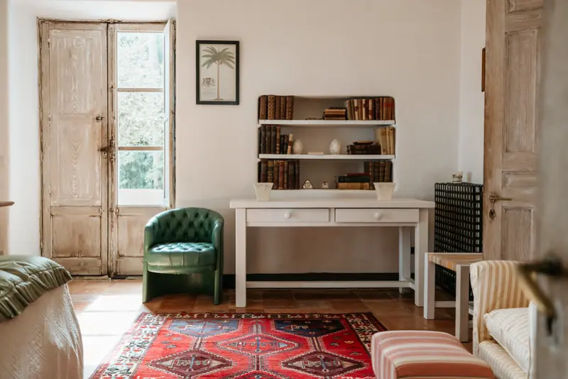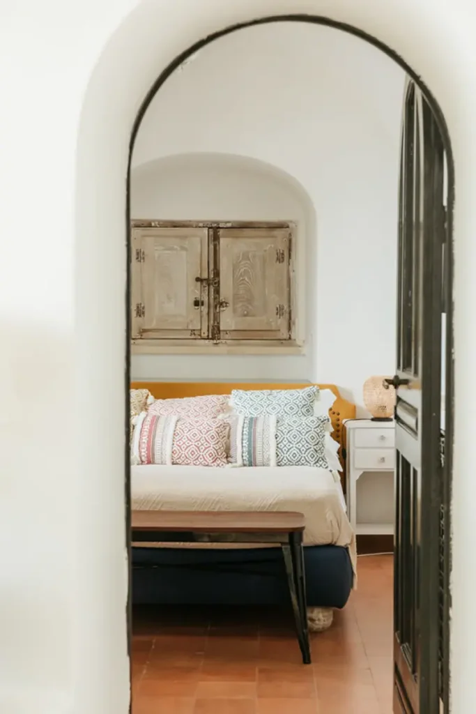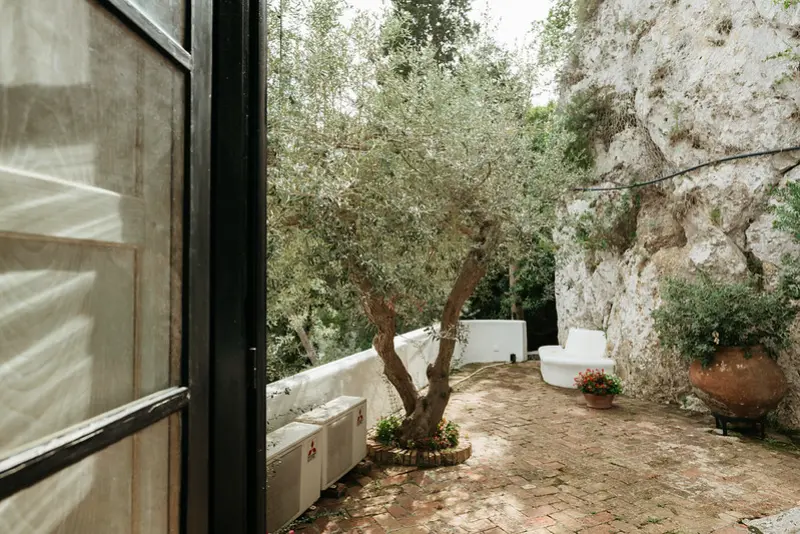 The villa’s six tasteful bedroom suites are distributed between the main house and a separate guest house, which features its own kitchenette, living area, and private terrace. The bed configurations include one king, one queen, three doubles, and one twin. Throughout the interiors, you will find a sophisticated blend of fine Italian marble in the beautifully tiled bathrooms, alongside curated antiquities, artwork, and sumptuous textiles. The spacious living room, with its lofty ceilings, is a cool and calming haven for relaxation after a day of sun. Meals can be prepared in the large main kitchen, stocked with gorgeous ceramics, or in the secondary outdoor kitchen, ensuring that the breathtaking views are enjoyed during every moment of your stay.