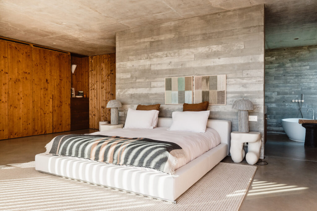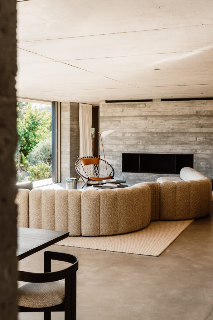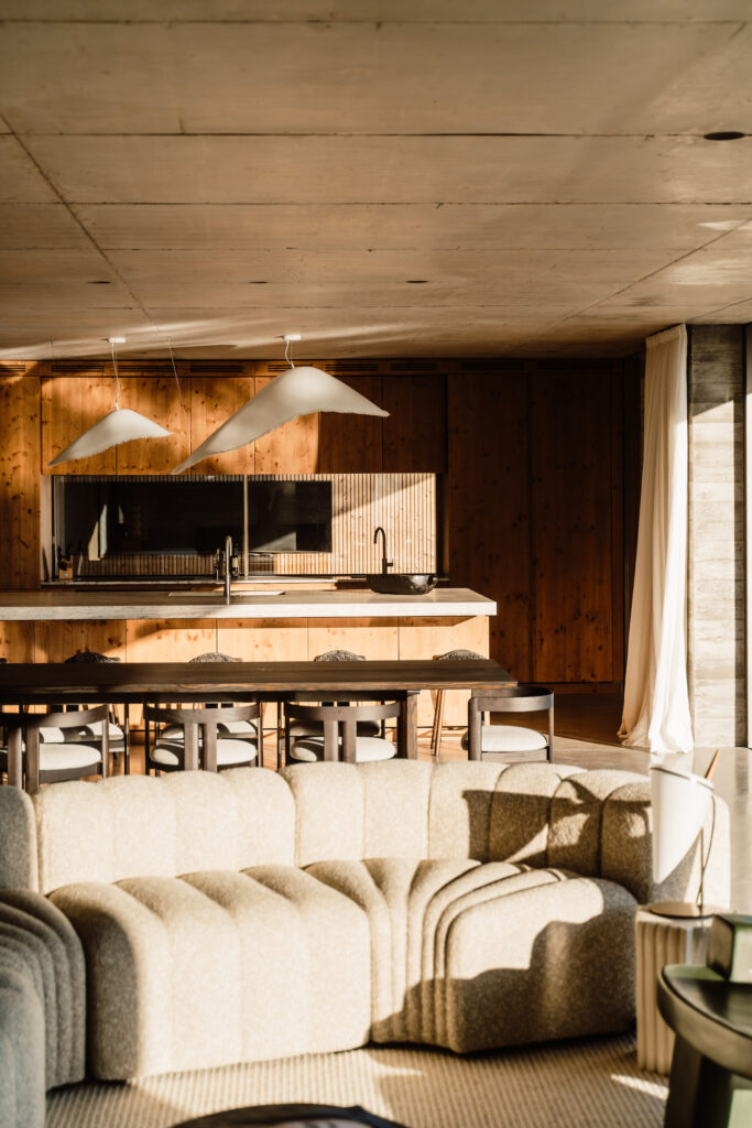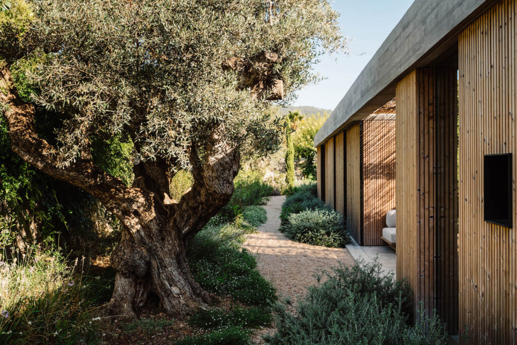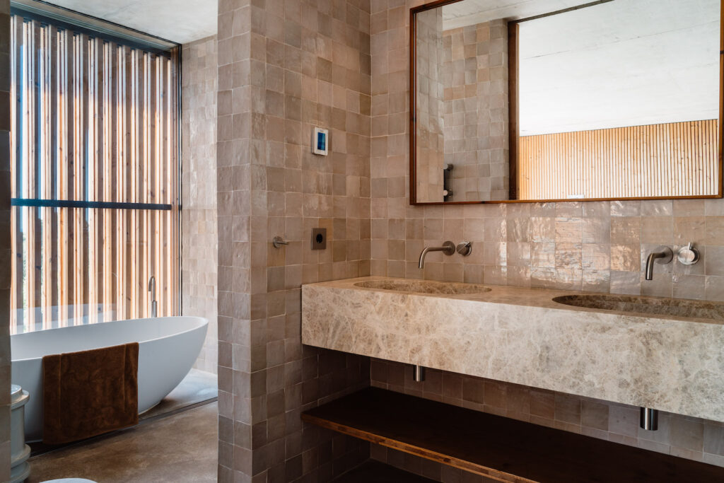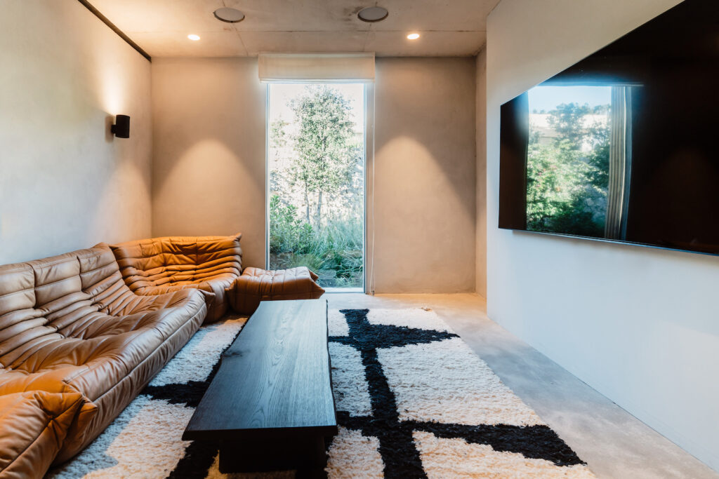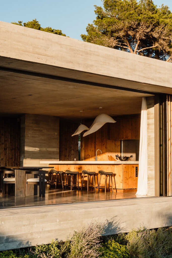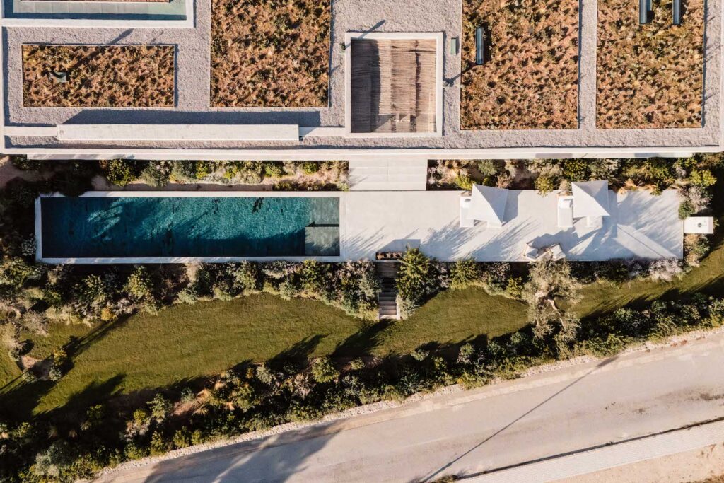 On entering the property, guests are welcomed into the main living area with floor to ceiling windows which showcase unparalleled views over the Mediterranean gardens to open sea views and the mythical Es Vedra. Natural colours of stone and wood, create a cool, calming ambience and chic, sumptuous furniture makes a cosy space. Off the living area is a functional study for those needing to stay connected while away and a cinema room. High speed internet comes as standard, of course. The kitchen is fitted with SMEG appliances and opens out onto a large shaded dining area that overlooks the pool.