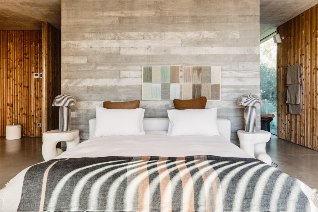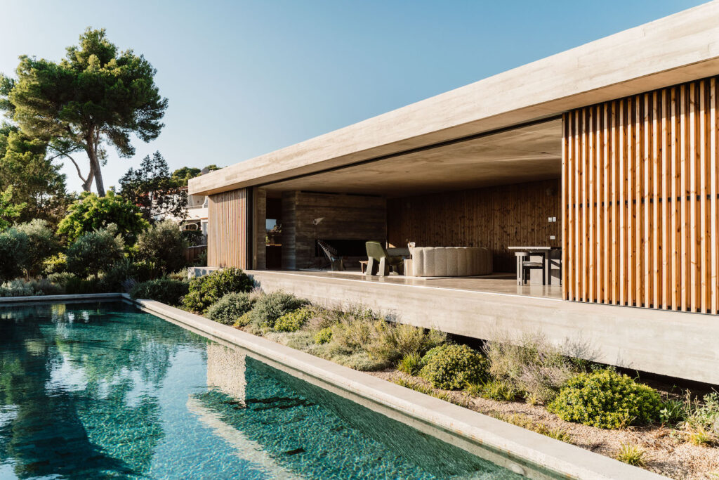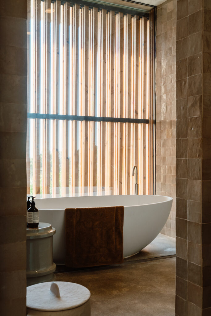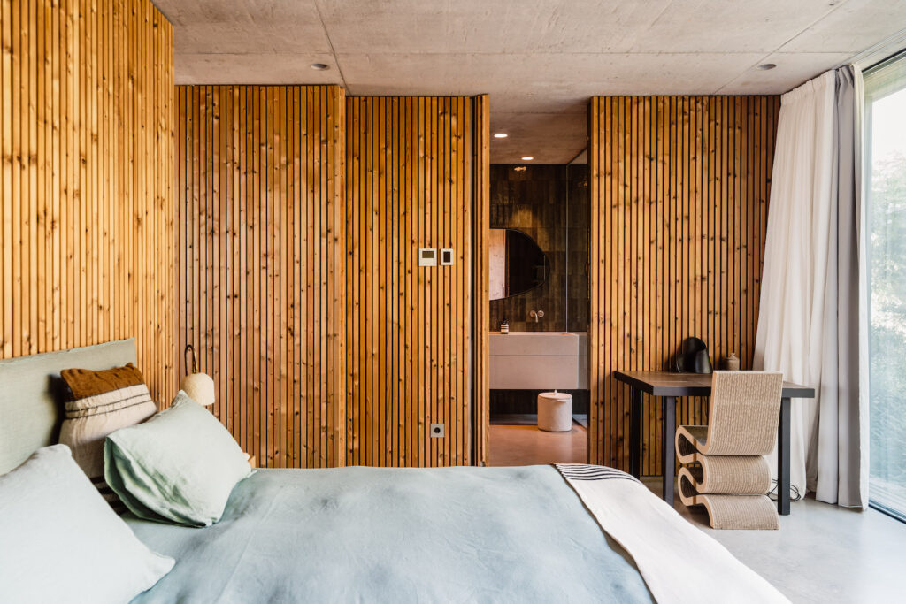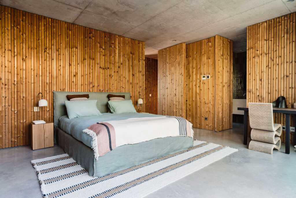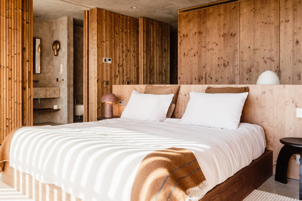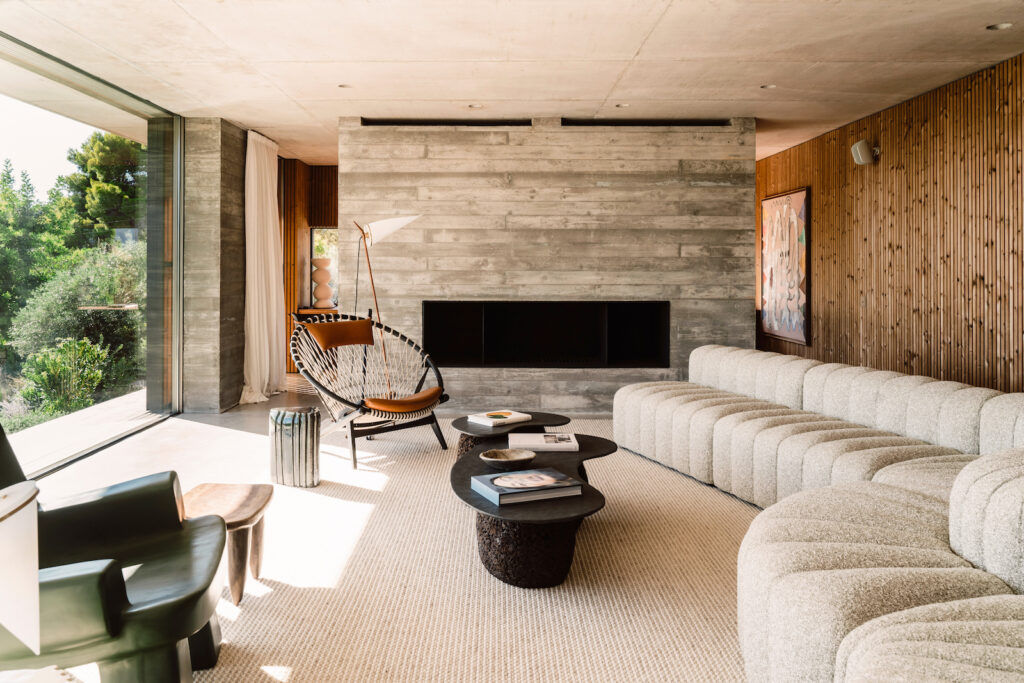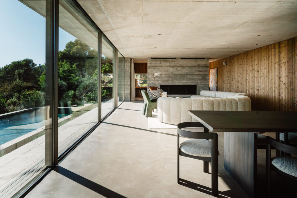 On entering the property, guests are welcomed into the main living area with floor to ceiling windows which showcase unparalleled views over the Mediterranean gardens to open sea views and the mythical Es Vedra. Natural colours of stone and wood, create a cool, calming ambience and chic, sumptuous furniture makes a cosy space. Off the living area is a functional study for those needing to stay connected while away and a cinema room. High speed internet comes as standard, of course. The kitchen is fitted with SMEG appliances and opens out onto a large shaded dining area that overlooks the pool.